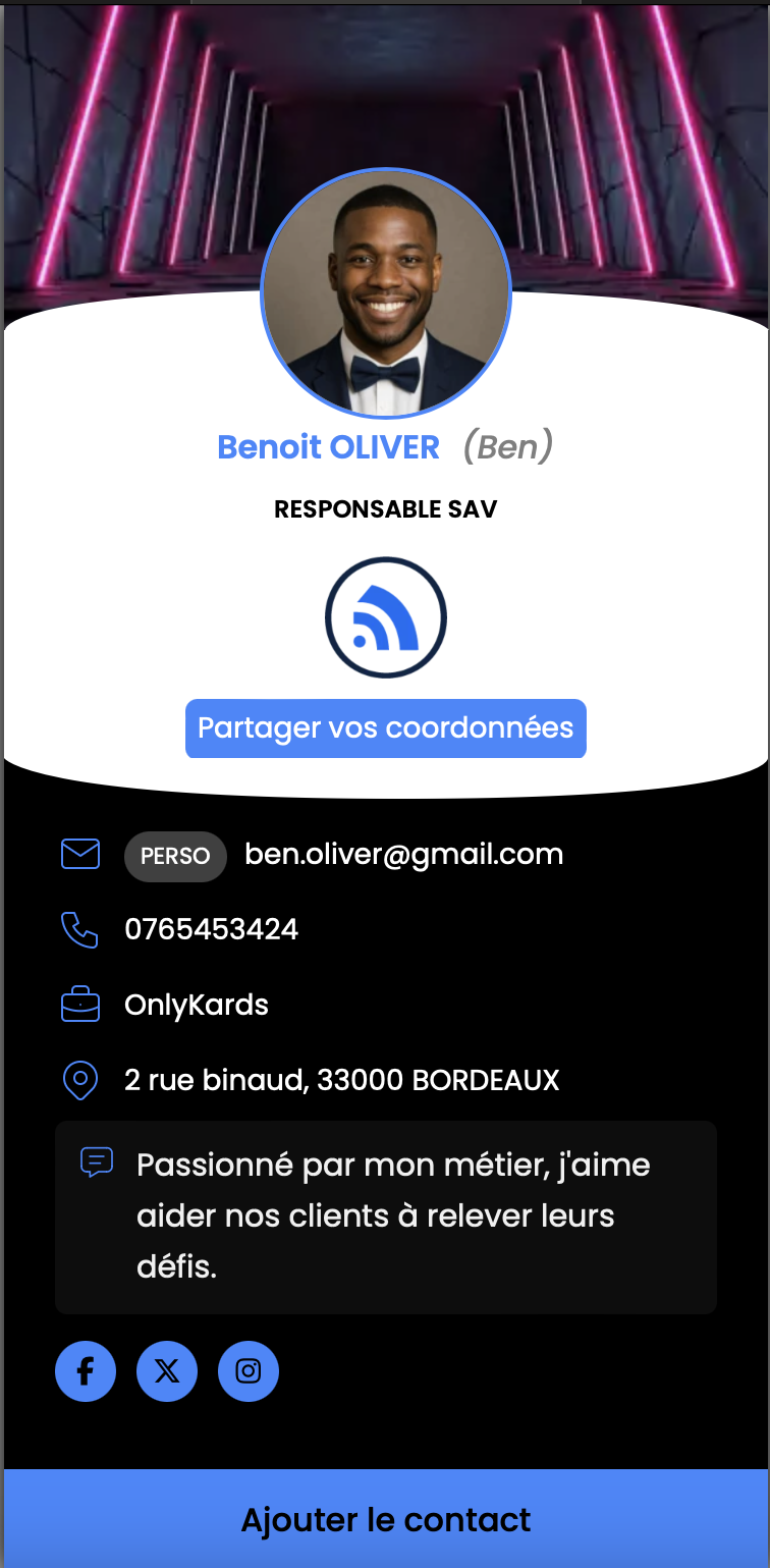Chaque scan de votre carte permet à votre contact de vous laisser ses infos directement.